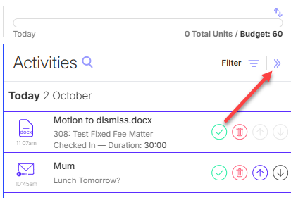 | Charge & Upgrade Charge all current activities for the contact, and upgrade the contact. Future activities for an upgraded contact will automatically go to your Timesheet as a time entry, with their most recently selected matter suggested. Upgrade contacts you bill most activity for to automate your time recording and save time. | |