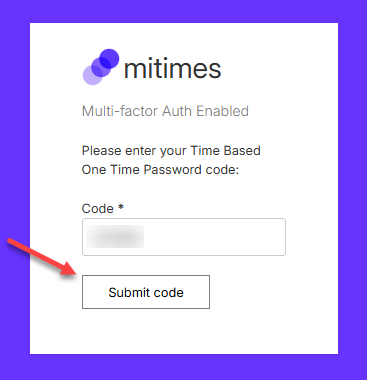 With 2FA enabled, you will be prompted to enter the verification code from your authenticator app when logging into Mitimes.