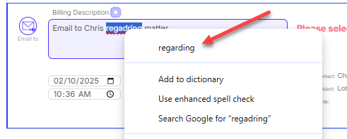 With your browser’s Spell Check enabled, words spelled incorrectly in Mitimes will be highlighted in red.