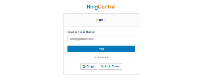 You will then be directed to RingCentral to authenticate. Follow the prompts to log in.
